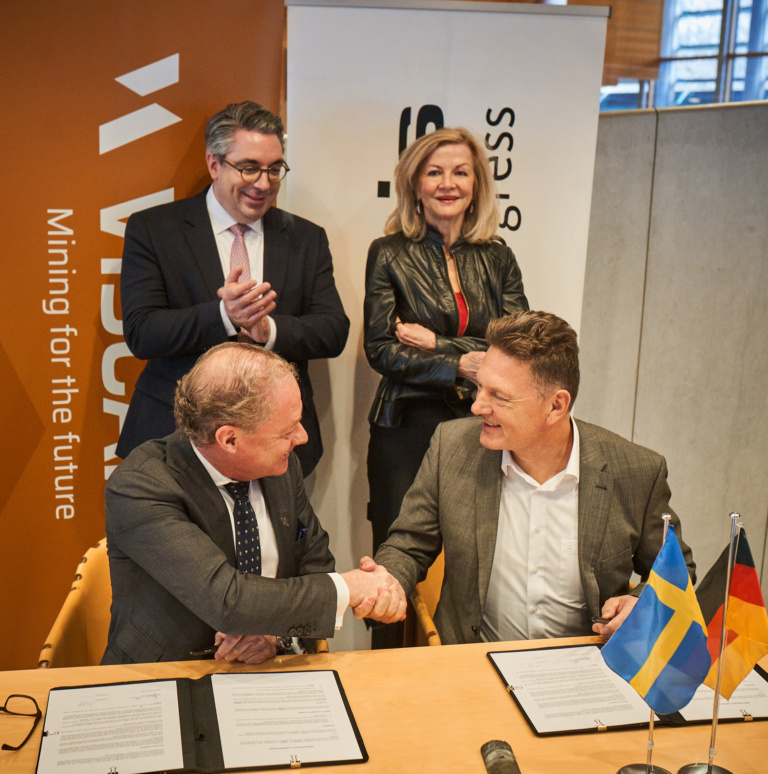 I går formaliserade Gruvaktiebolaget Viscaria och Aurubis AG det tidigare kommunicerade samförståndsavtalet (MoU) om ett långsiktigt avtal för leverans av kopparkoncentrat vid en signeringsceremoni på Sveriges ambassad i Berlin. Ceremonin ägde rum i närvaro av Tysklands parlamentariska statssekreterare Stefan Rouenhoff samt Sveriges ambassadör i Tyskland, Veronika Wand Danielsson. Detta är en viktig milstolpe i arbetet med att säkra hållbar kopparförsörjning för Europa.